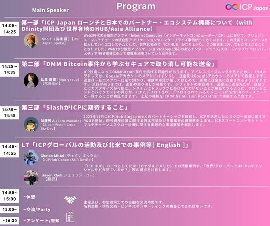 テーマ:「ICP Japan ローンチと日本でのパートナー・エコシステム構築について(with Dfinity財団及び世界各地のHUB/Asia Alliance)」