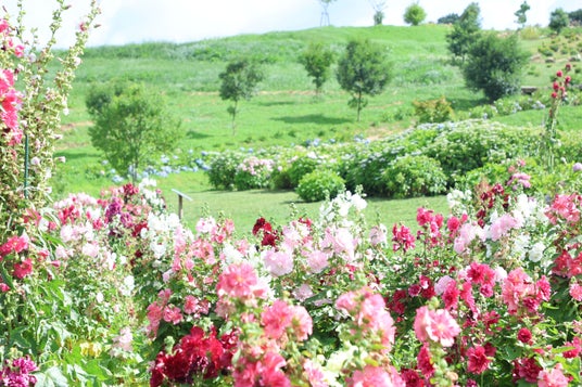 今年は八重咲のタチアオイなど品種を増やし、植栽レイアウトも新しくなります。(写真は2024年の様子)