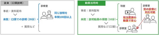 - 定型部分の説明を動画視聴に置き換えた時間で、医師はより多くの診察・個別説明に注力