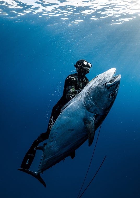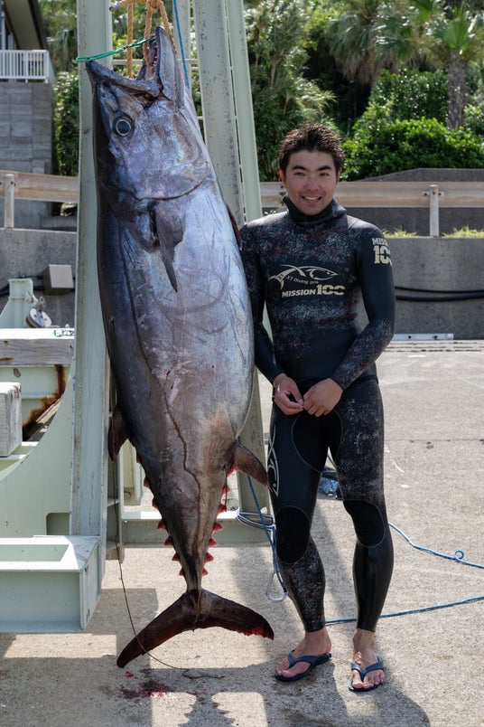 素潜り・手銛一本で、前人未到の100kg超イソマグロ捕獲
