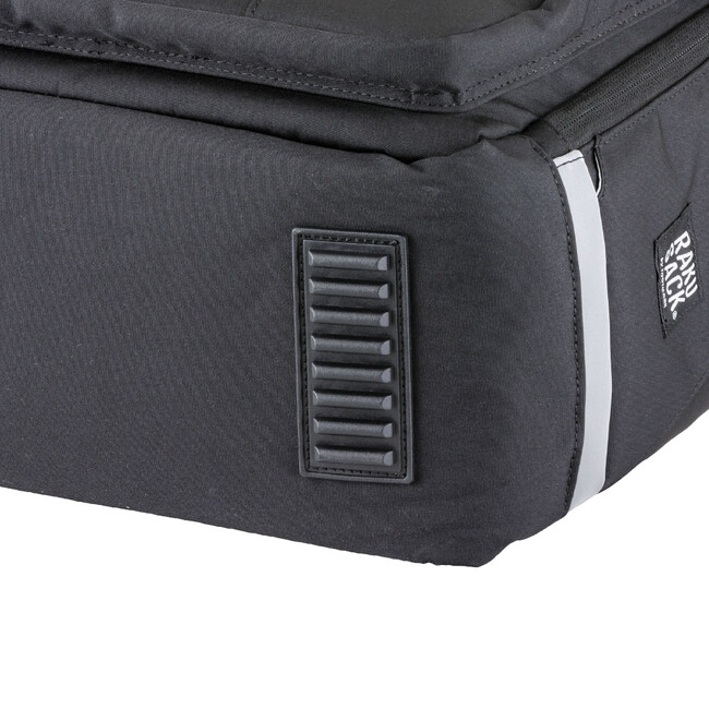 3)ラクサックシリーズ初の「CORDURA(R)(コーデュラ)」生地を使用。摩擦、引き裂き、擦り切れに強いことが特徴で耐久性に優れています。表面には撥水加工も施しています。