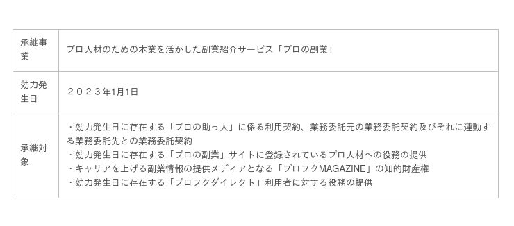 「プロの副業」は、今後の少子高齢化や採用難易度の向上などの背景から2018年にスタートした事業です。その後、事業としては安定した事業拡大はしてきたものの、ホールハートとしては「はじめてのエンジニア」(未経験エンジニア紹介)や「世界の人材ターミナル」(外国人紹介)といった新規事業が好調で経営資源を集中するため、この度リアステージ社へ事業譲渡することといたしました。リアステージ社の強い営業力のもと「プロの副業」が大きく発展していくことを期待しております。