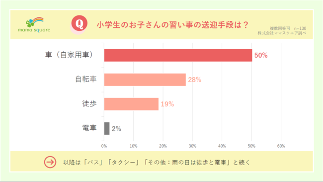 また、習い事の場所までの移動もまだまだ心配・不安の気持ちが高く、子どもの習い事・習い事の送迎を「大変」と感じながらも、多くの働くママが送迎をしていることがわかりました。