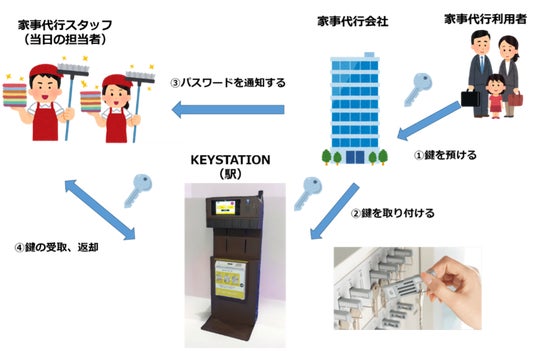 カギの無人受け渡しサービス「KEY STATION」は、駅やマンション、宿泊施設、コインランドリーに設置されています。