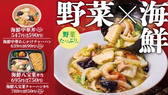 弊社は、この度11月1日(金)より、海鮮と野菜をたっぷり使用した海鮮中華あんかけシリーズ「海鮮中華丼(税込:590円)」、「海鮮中華あんかけチャーハン(税込:690円)」、「海鮮八宝菜弁当(税込:750円)」、「海鮮八宝菜チャーハン弁当(税込:850円)」、「海鮮八宝菜(単品)(税込:490円)」を季節限定で発売します※1。