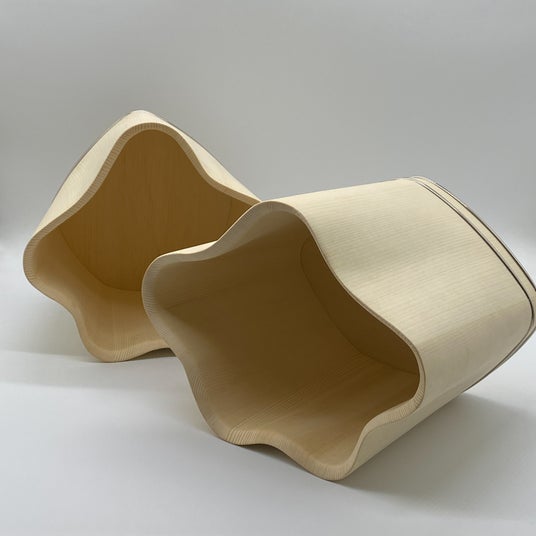 現在、京都と滋賀に工房を構える中川周士氏は、重要無形文化財保持者である父・中川清司氏に師事。木桶の制作技法など、伝統的な木工技術を継承し、風呂桶や酒器を始め、白木の美しさを際立たせ、現代のライフスタイルにも溶け込むフォルムの工芸品を制作し続けています。コラボレーション製品も多数手掛け、ロンドンのV&Aミュージアムやパリの装飾美術館にも作品が所蔵されています。