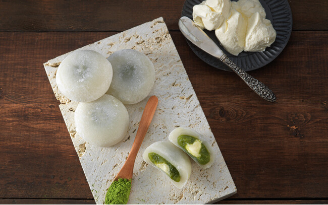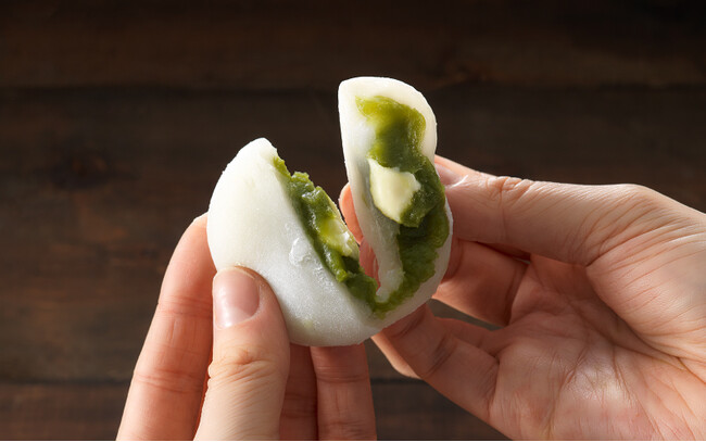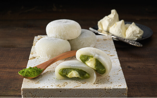 抹茶餡とチーズがとろけ合う もちもちチーズ大福