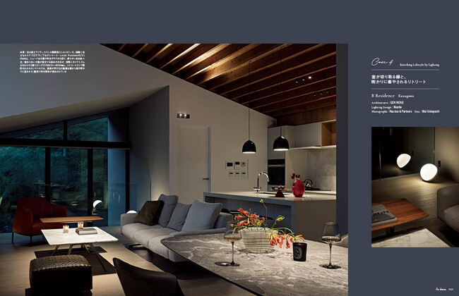 夕暮れから夜の時間を演出する照明。家族と談笑したり、一人で読書をしたりと、シーンに寄り添いながら、空間を美しく見せる明かりを計画したいもの。今回は、空間や周辺環境、さらに暮らし方に合わせて照明を計画した4軒の住まいを紹介。照明の明かりによって雰囲気を変える建築の姿にも注目します。
