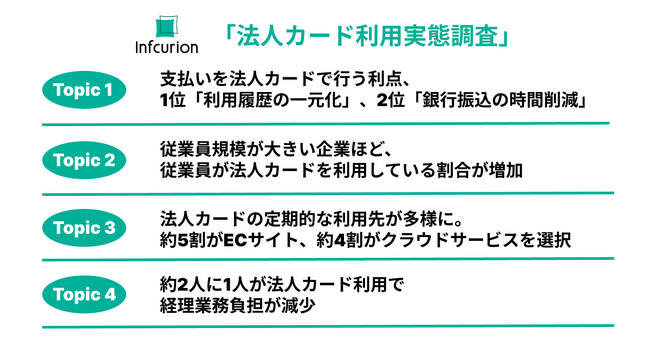 株式会社インフキュリオン(本社:東京都千代田区、代表取締役社長:丸山 弘毅)は、経理・会計・財務業務を担当する全国の会社員を対象に「法人カード利用実態調査」を実施しました(※1)(※2)。