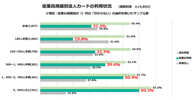 従業員規模が大きい企業ほど、従業員が法人カードを利用している割合が増加傾向