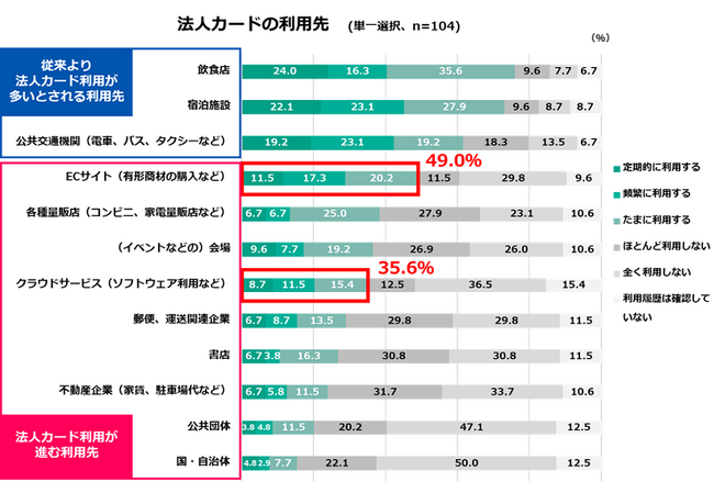 法人カードの定期的な利用先が多様に。約5割がECサイト、約4割がクラウドサービスを選択