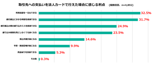 図1:取引先への支払いを法人カードで行えた場合に感じる利点