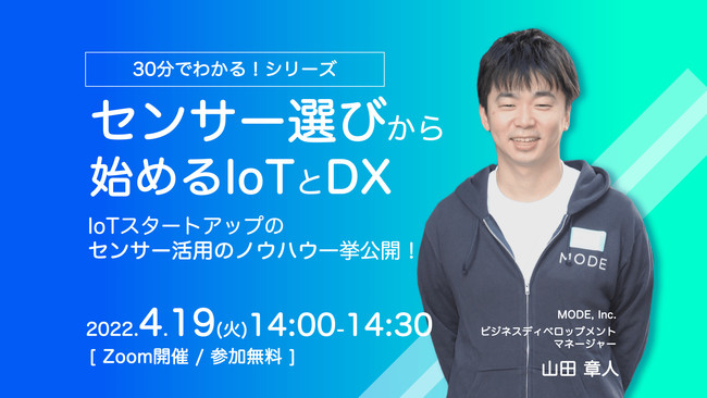 シリコンバレー発のIoT・コネクテッド関連のプラットフォームを提供するMODE, Inc.(本社:アメリカ合衆国・カリフォルニア州サンマテオ、CEO:上田 学、以下、MODE)は、IoT技術を使った現場DXに欠かせないセンサーの選び方と活用のノウハウをご紹介するオンラインセミナーを2022年4月19日(火)に開催致します。