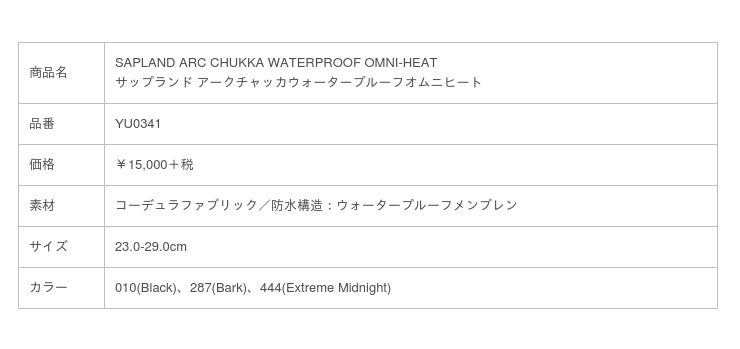 SAPLAND ARC WATERPROOF OMNI-HEAT(サップランド アークウォータープルーフオムニヒート)