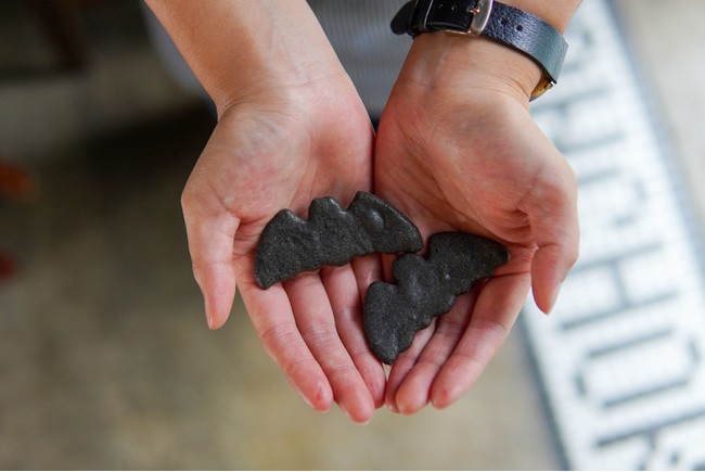 その名も「コウモリクリームソーダ」。目を疑う黒色は、こだま食品株式会社(広島県福山市)の竹炭パウダーを使用。福山城の鉄板張りと福山市章のコウモリの色にちなんでいます。(アイスに差したクッキーはもちろんコウモリの形!)肝心なお味は、瀬戸田産のレモンを使用した自家製レモンスカッシュ。爽やかな風味に瀬戸内を感じることができます。アイスが苦手なお客様にはアイスなしの「コウモリソーダ」もご用意しています。