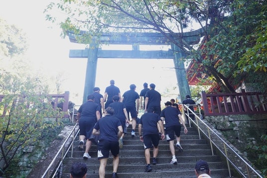 今シーズンのクラブスローガン「登」にちなんで、駿河湾に面した久能山の南斜面に設けられた表参道(1159段の曲がりくねった石段)をチームで登りました。