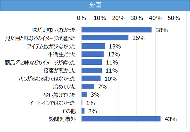5:パン屋でガッカリしたが57% 原因は主に味によるもの。