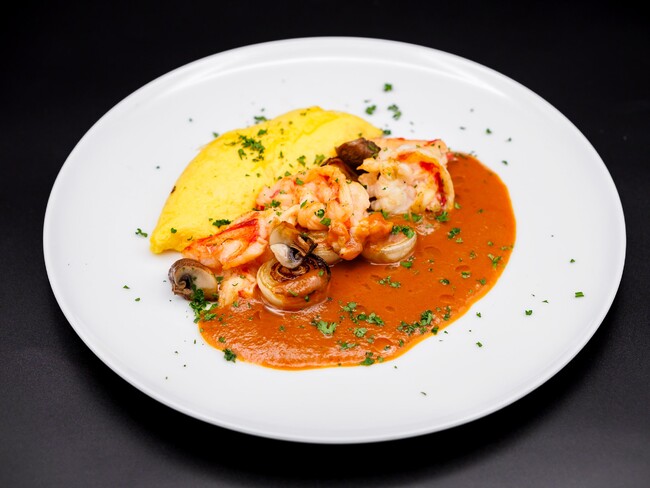 ロブスターの旨みがギュッと凝縮されたアメリケーヌソースとともに、ふわふわに仕上げたオムレツをご提供いたします。