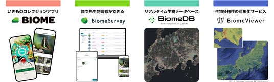 そのほか、生物調査の計画・実施・データ収集・管理を一気通貫で支援する本格的な生物調査支援ツール「BiomeSurvey」や生物多様性可視化サービス「BiomeViewer」のサービスも提供しています。