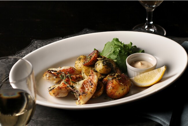 福岡県の近海で獲れる魚を使っているため、地産地消という点でもお客様に安心してお召し上がりいただけます。厳選した天然白身魚の味をダイレクトに味わっていただけるようシンプルにオーブン焼きにし、ハーブの風味豊かな味わいに仕上げました。