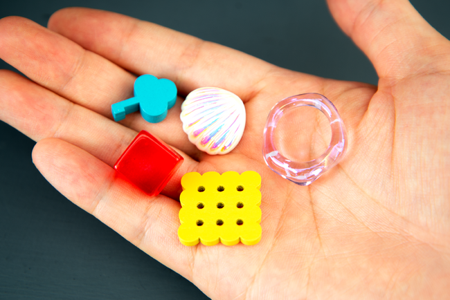 ゲームを盛り上げるのは、可愛らしいおばけコマやお題カードと、色鮮やかでポップな形状の5種類のアイテムたち。素材や形状が違うようで少し似ているアイテムの感触に、プレイヤーは翻弄されるでしょう。果たして、誰よりもすばやく指定のアイテムを落として、鈴を5つ集めることができるでしょうか。
