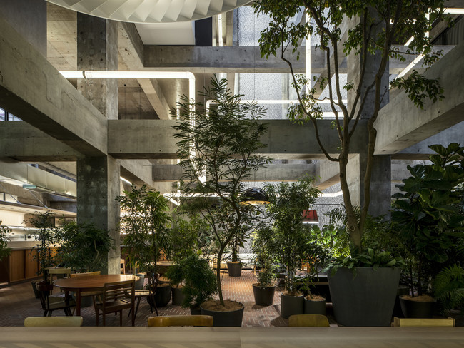 白井屋ホテルのオールデイダイニングとして、モーニングからディナーにいたるまで、シェフの星直樹が地元の食材をいかし、自由な発想でつくる洋食をご提供。定番洋食の既成概念にとらわれず、召し上がる方に納得の味と驚きのプレゼンテーションをお楽しみいただける場です。歴史ある旅館の70年代の建物を建築家の藤本壮介氏がリノベーションし、4層を大胆な吹き抜け空間とし、そこに金沢21世紀美術館のスイミングプールで知られる、アルゼンチンのレアンドロ・エルリッヒに氏よるパイプのアート作品をインスタレーションし、さらにあふれんばかりの緑をとりいれた、まちのリビングです。スタインウェイの自動演奏ピアノも導入し、食、アート、デザイン、音楽、そして訪れる人との出会いを創出します。