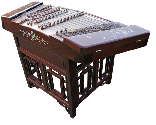 明王朝後期に中国に伝わった、ペルシャが起源と言われる「揚琴(ようきん)」は、台形の箱に水平に貼られた多数の弦を2本の撥で叩いて演奏する打弦楽器です。ピアノの原型とも言われ、英語名のハンマーダルシマー(hammer dulcimer)の語源はラテン語のダルシメロス(甘美な音楽)と言われています。