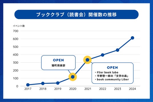 これらのコミュニティオープン以降、2021年には333回だった開催数が2024年には612回に増加。ブッククラブに関連するイベントの開催数が1.8倍ほど増加していることがわかりました。