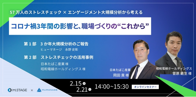上記の報告会では、コロナ禍が『働く人々』に与えた影響/多様化する『働き方』とストレスの分析/エンゲージメントの視点からみるストレスマネジメント等のさまざまな視点から、より詳しい大規模分析の結果をご報告いたします。データ分析と企業事例を通じ、これからの職場づくりのヒントをお届けします。
