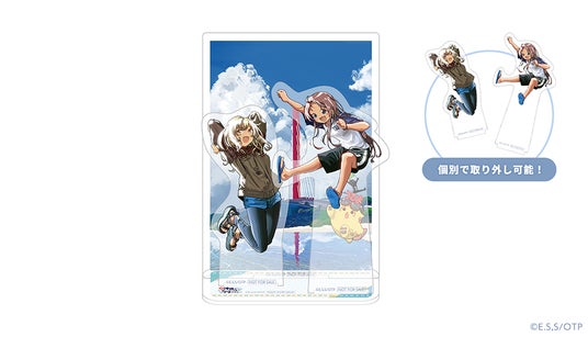 アクリルスタンドはジオラマ形式になっていて、組み立てて飾ったり、キャラクター部分を個別で取り外して沖ツラの聖地を背景に記念撮影を楽しむことができます!
