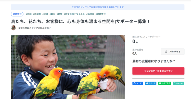 継続寄付型クラウドファンディング募集中! 富士花鳥園を一緒に育てて下さい。