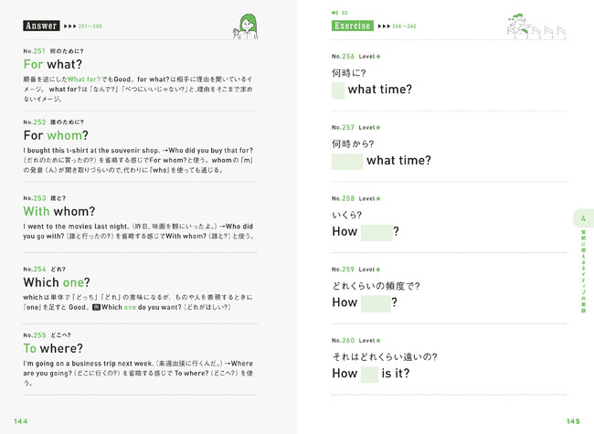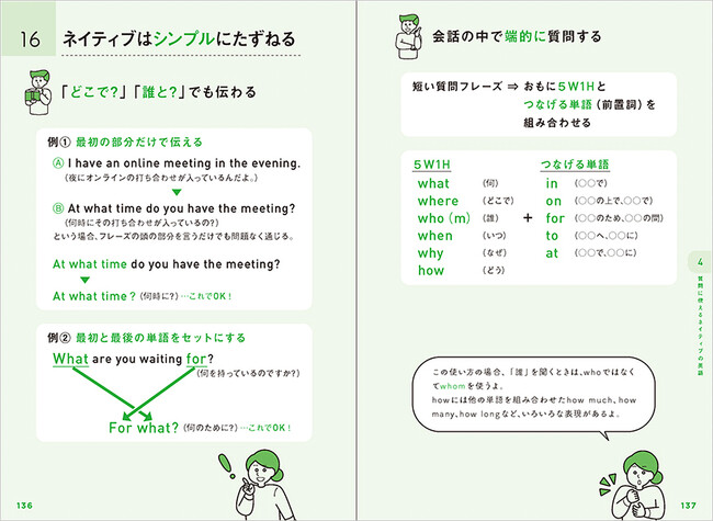 「思いや行動を伝える」「質問する」など、シーン別に覚えられる!