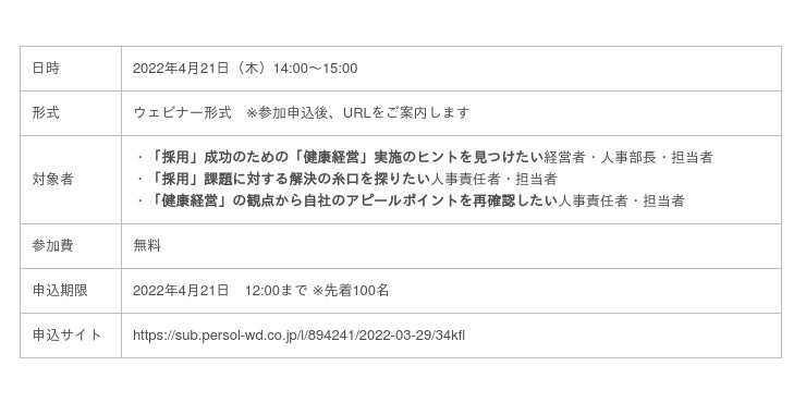 パーソルワークスデザイン ウェビナー事務局(E-mail:pwd-webmarketing@persol.co.jp )