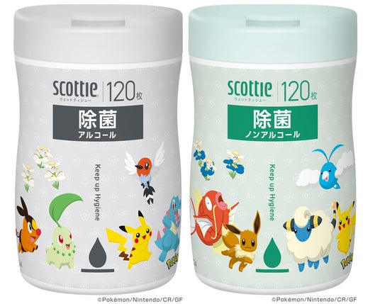 ■「スコッティ ウェットティシュー 除菌 アルコールタイプ 120枚 /除菌 ノンアルコールタイプ 120枚 ポケモン」