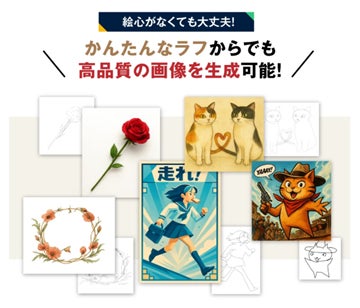 2ステップで構図・色調・質感などを整理でき、初心者からクリエイターまで、安定した品質のAI画像制作をサポートします。