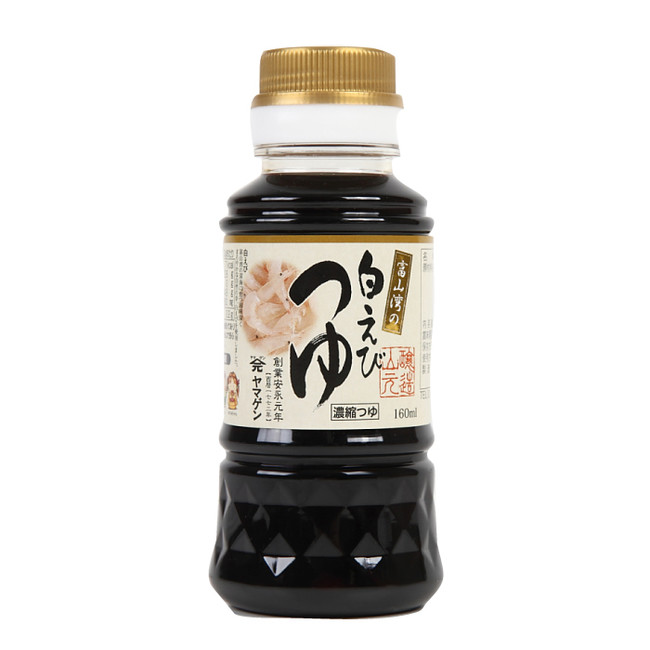 富山湾の宝石とうたわれる「白えび」からじっくりと出汁をとった4倍濃縮タイプのだしつゆ。