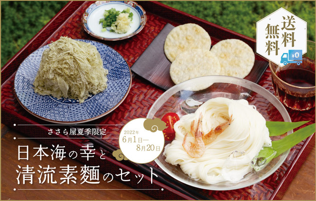 詳細は、ささら屋公式オンラインショップ 「2022年夏季限定 日本海の幸と清流素麺のセット特設ページ」をご確認ください。
