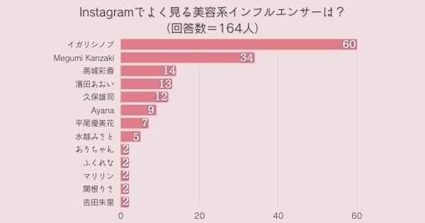 【総括】Instagramでよく見る美容系インフルエンサー1位は『イガリシノブ』でした