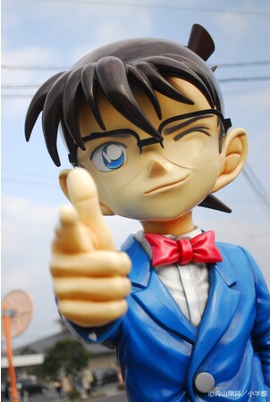 「青山剛昌ふるさと館」は、子どもから大人まで楽しめる体験型施設です。名探偵コナンの漫画についてはもちろん、青山先生の少年時代の思い出の品やエピソードなどが展示され、ここに来れば、漫画家・青山剛昌先生のすべてがわかります。また、コナン駅から青山剛昌ふるさと館までの1.4kmを「コナン通り」と名付け、ブロンズ像や装飾など、街中が名探偵コナンで彩られ、街全体が聖地となっています。