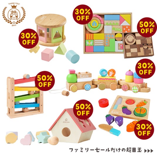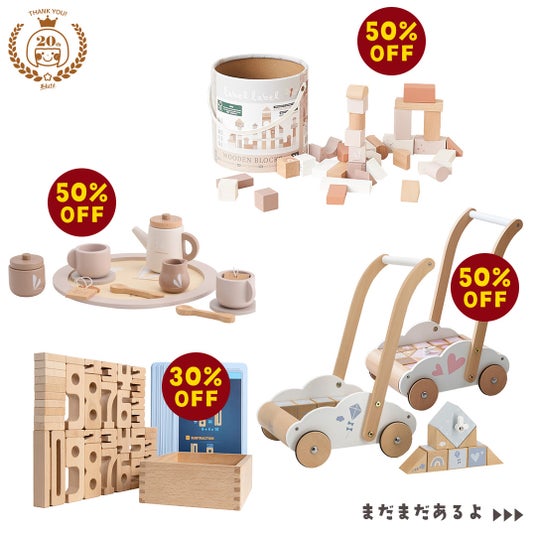0歳~3歳向けの木のおもちゃや離乳食食器をはじめとするベビーグッズを2日間限りの特別価格で販売いたします。