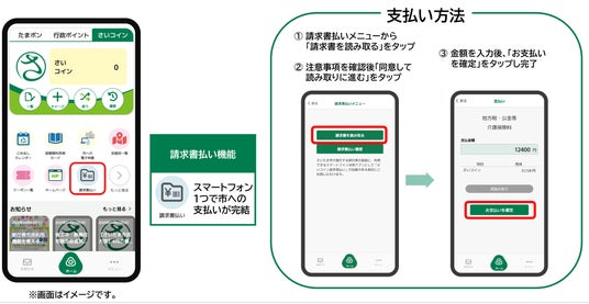 フェリカポケットマーケティング株式会社(東京都文京区、代表取締役:納村哲二、以下当社)は、株式会社つなぐ(さいたま市、代表取締役:佐々木彰)が運営する市民アプリ・デジタル地域通貨事業に対し、「さいたま市みんなのアプリ」(以下「本アプリ」といいます)を提供しております。この度本アプリに、新機能「請求書払い」をリリースいたしましたので、お知らせいたします。