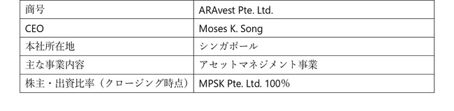 ARAとKDXのアジア太平洋地域を中心とした国内外におけるアセットマジメントのノウハウと、SMFLグループの財務基盤・調達力を相互に活用し、シナジーの最大化を図ることを目的に、ARAが運営する私募ファンド事業をカーブアウトした新会社(以下「ARAvest」)の取得の合意に至りました。MPSとKDXが設立した特別目的会社を通じて、ARAvestの全株式をそれぞれMPS 70%、KDX 30%の出資比率にて、270百万米ドルで取得する予定です。ARAの現CEOであるMoses K. Song氏がCEOに就任することが内定しており、Moses K. Song氏は一部出資も含めARAvestの経営に参画する予定です。ARAvestはARAの標章を引き継ぎ、さらなるブランド価値向上に努めます。