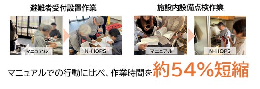一方、N-HOPS を使用したグループでは、アプリの画面上に表示される指示に従ってスムーズに行動でき、開設作業時間を約54%短縮しました。