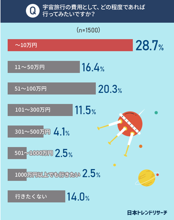 現在は高額な費用が掛かると言われていますが、どのくらいの費用なら宇宙旅行をしてみたい方が多いのでしょうか。