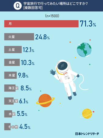 71.3%と7割以上の方が「月」に行ってみたいと思っているようです。