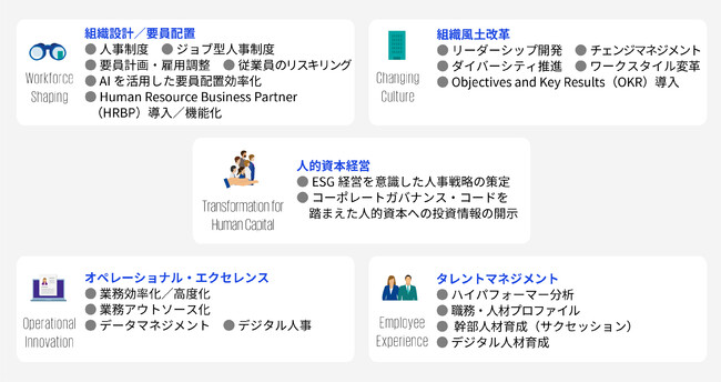 企業経営において「人的資本」の関心が高まっており、人材にまつわる無形資産を開示するガイドラインや規制が制定・改定されているなか、企業は実効性のある人的資本経営が求められています。さらには、デジタルトランスフォーメーション(DX)の対応、働き手の就労観の変化、ダイバーシティ対応など、人事部門を取り巻く内外の環境は大きく変化しています。