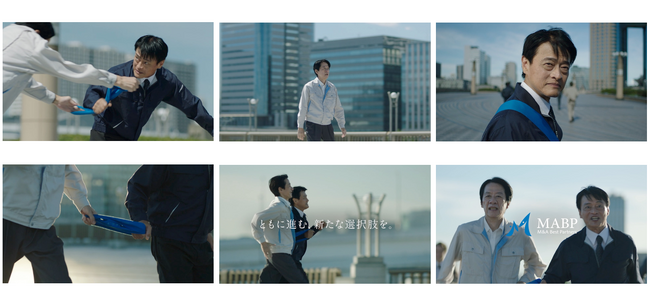 TVCM「ともに進む、新たな選択肢を」篇は、譲渡企業と譲受企業、双方の関係性とM&A実施後のその先を"マラソン"と"タスキ"をモチーフにし、M&Aベストパートナーズが目指す「M&Aの在り方」を表現した内容となっております。