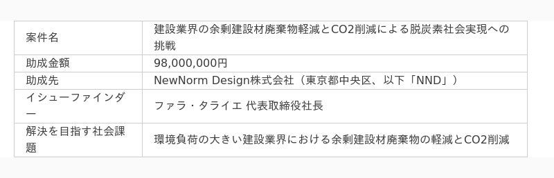 三井物産株式会社(本社:東京都千代田区、社長:堀 健一、以下「三井物産」)は、「建設業界の余剰建設材廃棄物軽減とCO2削減による脱炭素社会実現への挑戦」案件を「三井物産共創基金」(以下「本基金」)の第3号助成案件として選定しました。