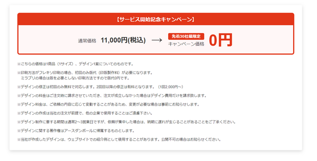 「ダンボールデザイン制作サービス」先着30社限定キャンペーンで11,000円→0円に