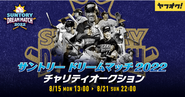 ヤフー株式会社(以下、Yahoo! JAPAN)が運営するネットオークションサービス「ヤフオク!」では、8月15日(月)から8月21日(日)まで、サントリーホールディングス株式会社による、震災・豪雨被害に見舞われた地域の野球に携わる子どもたちへの支援を目的としたチャリティオークション「サントリー ドリームマッチ 2022 チャリティオークション(以下、チャリティオークション)」を開催します。